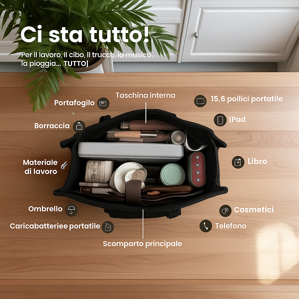 Chic, versatile e progettata per semplificarti la giornata — tutto ciò di cui hai bisogno in un’unica borsa.